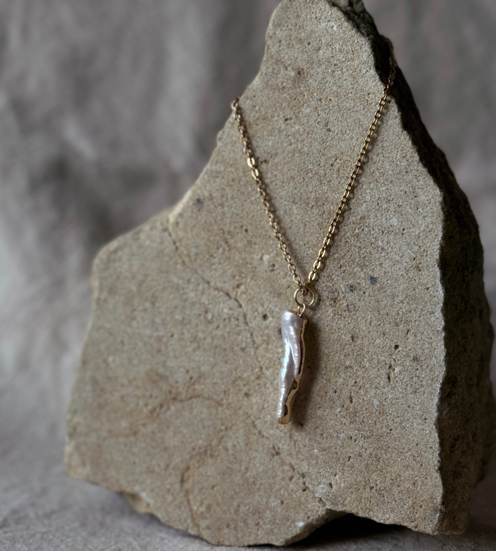 Když necháš přírodu promlouvat za Tebe... Unikátní podlouhlé nepravidelné Biwa perly s duhovým leskem připomínají svými organickými tvary a liniemi na povrchu listy exotických rostlin. Jejich sofistikovanost a osobitá krása vyniká sama o sobě. Jsou proto zavěšeny pouze na jemném háčku pozlaceném 24kt zlatem a v dolní části je zdobí drobná kulička. Přesně tak, aby spolu s náramkem vytvořily set plný něhy, ženskosti a harmonie. Velikost: celková délka cca 50 mm Materiál: sladkovodní perly, chirurgická ocel pozlacená 24kt zlatem DŮLEŽITÉ INFORMACE: o barevných a velikostních odchylkách u perel, minerálů a kovů a o péči o šperky si prosím přečti TADY Pokud potřebuješ šperk upravit na jinou velikost, prosím napiš mi toto přání a obvod Tvého zápěstí k objednávce do poznámky. Odeslání může trvat déle. Šperk je uložen v přírodním lněném sáčku s brandovou kartičkou a zasílán Českou poštou do 5 pracovních dní od uhrazení objednávky. Krabička k vybraným šperkům a dárkové balení je zdarma u objednávek nad 2 000 Kč.