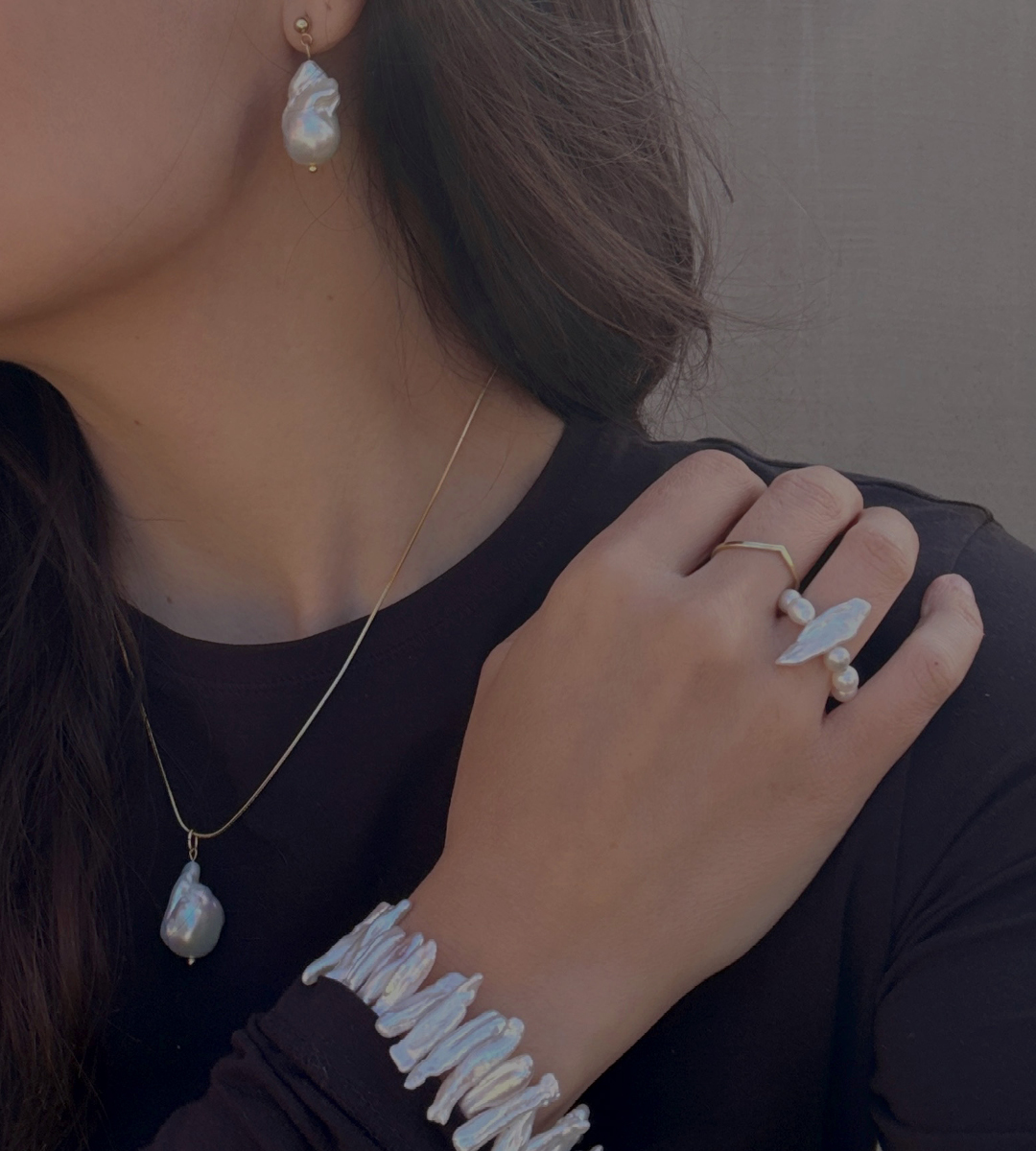 V kolekci k náhrdelníku najdeš také stejnojmenné náušnice a další šperky s barokními perlami, které můžeš společně kombinovat a vrstvit dle Tvé fantazie...