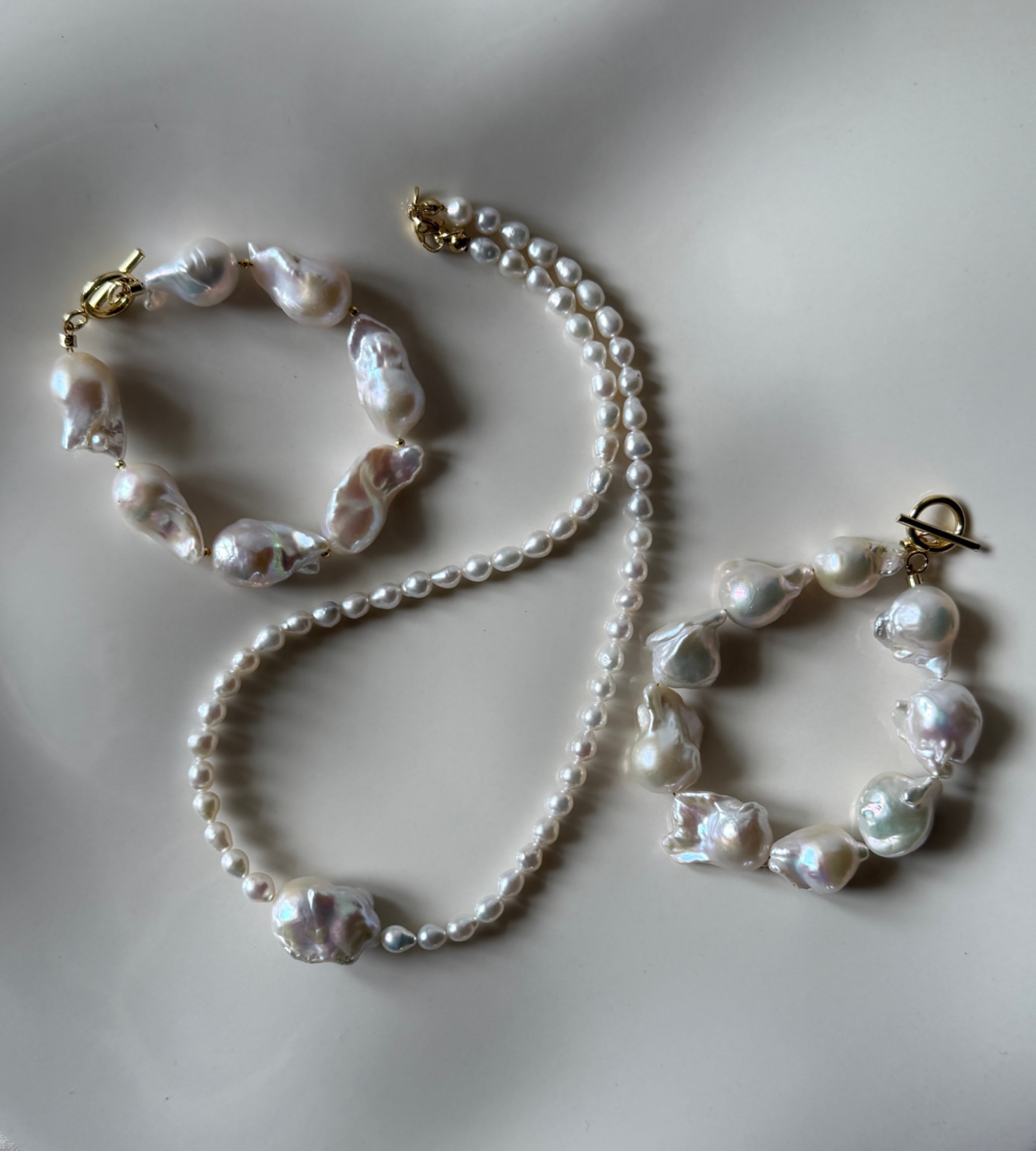 V kolekci k náhrdelníku najdeš také stejnojmenný náramek, náušnice a další šperky s barokními perlami, které můžeš společně kombinovat a vrstvit dle Tvé fantazie...