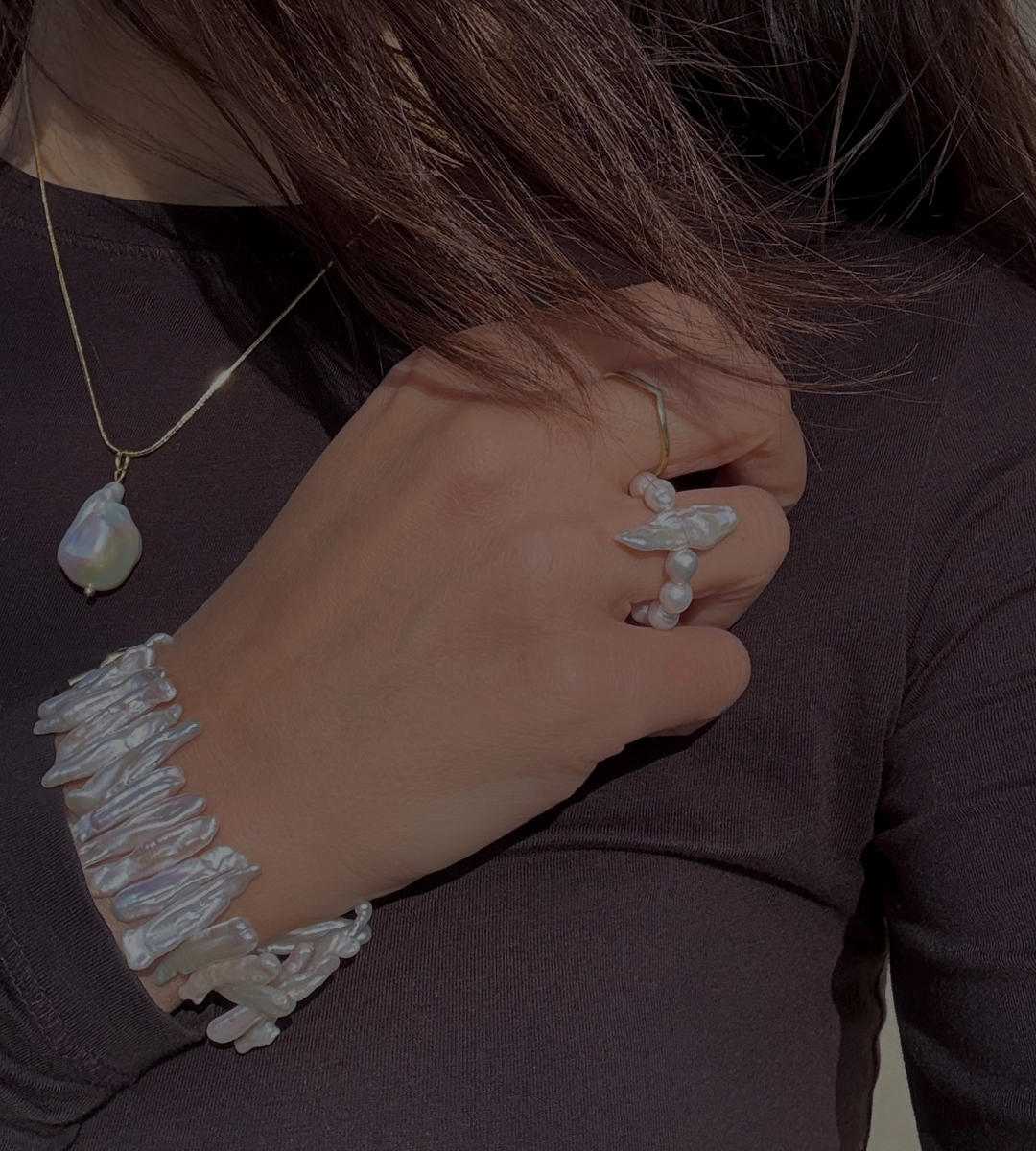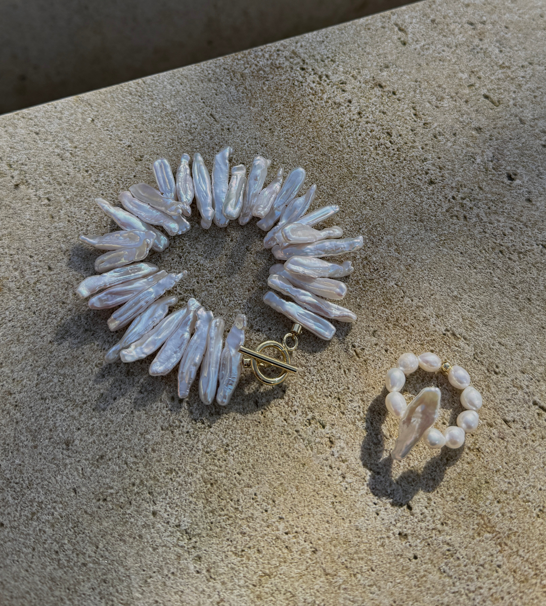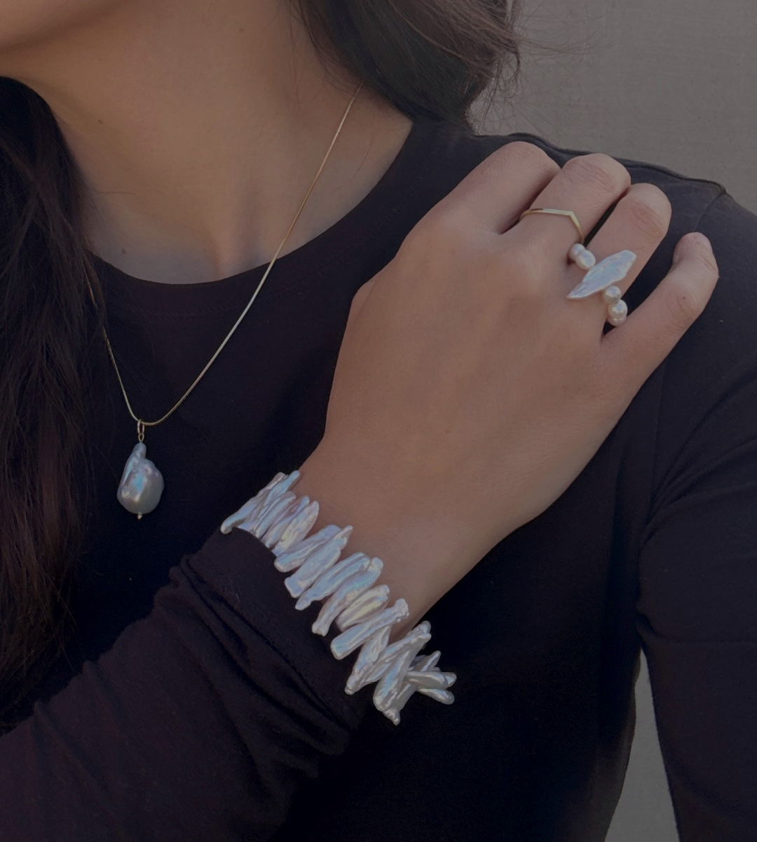 Artemidé v sobě propojuje nespoutanost, divokost a odvahu s láskyplnou ženskou esencí. Jedinečné dlouhé perly s organickým povrchem se nepravidelně vlní na náramku, který patří mezi nejvýraznější a nejosobitější kousky z celé kolekce. Doplněný je o minimalistické americké zapínání pozlacené 24kt zlatem, které zde zároveň plní i funkci estetickou, a svou barvou se nejvíce podobá pravému zlatu. Nemusíš se bát být jiná, buď však vždy svá...