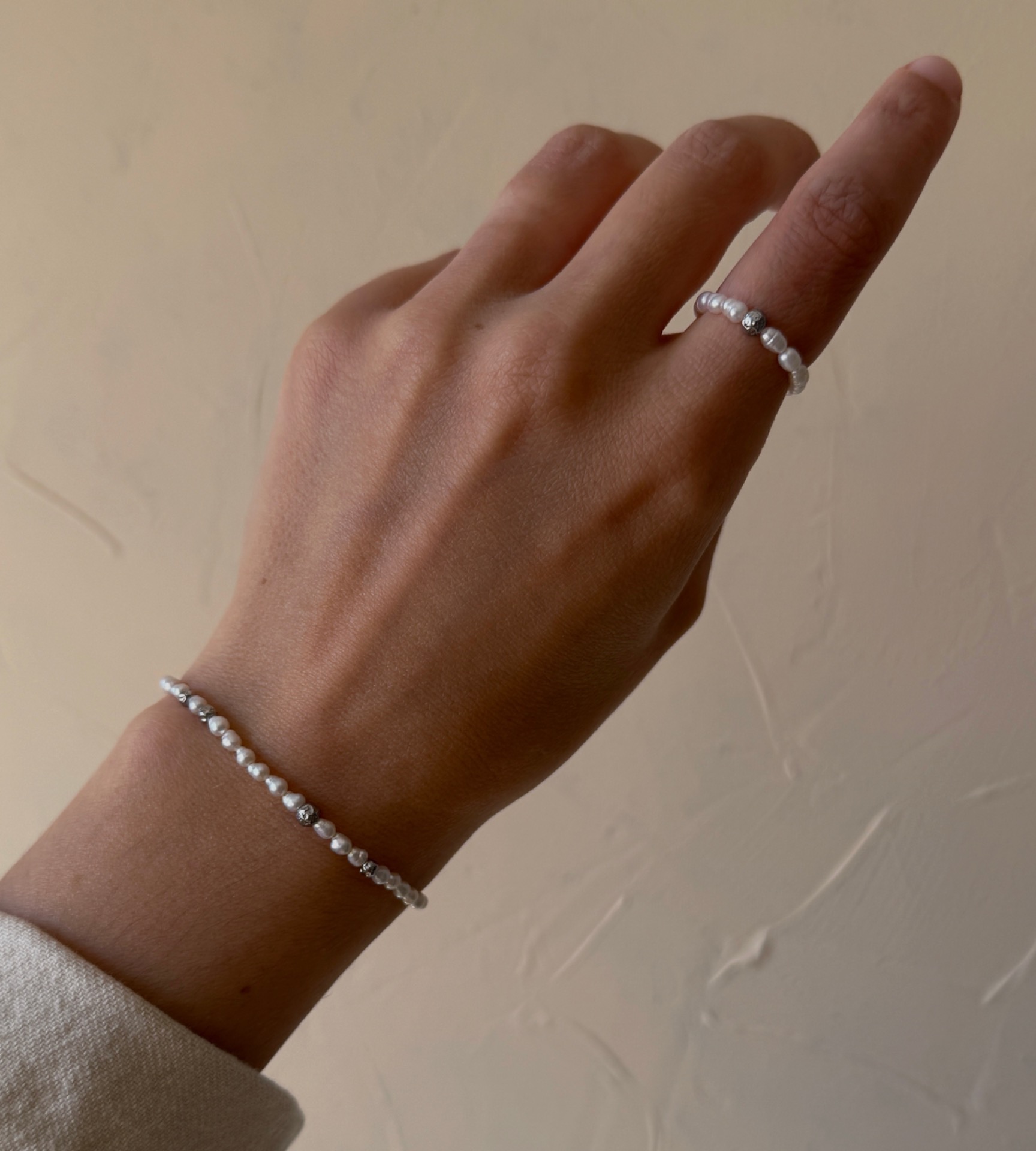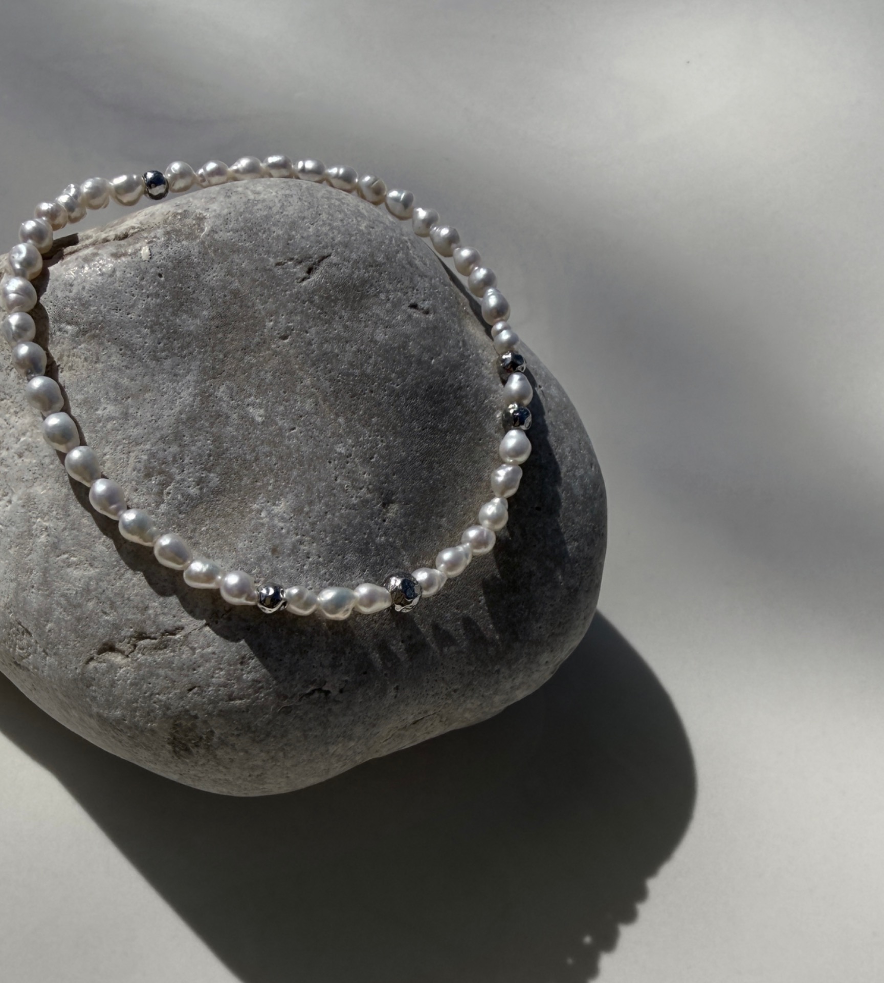 Jemný, něžný a minimalistický náramek z organických biwa perel, které jsou nepravidelně prokládané korálky se zvrásněnou strukturou připomínající povrch luny. Sofistikovaná krása i nadčasová elegance, kde se kouzlo ukrývá v detailu Ti připomene, že to nejdůležitější vedení je Tvá intuice.