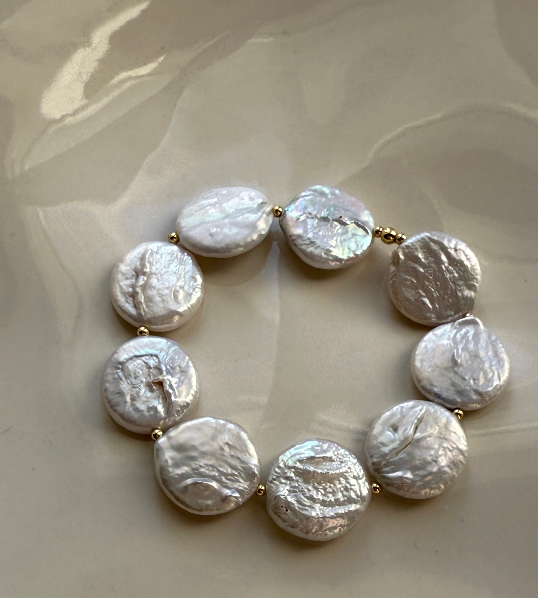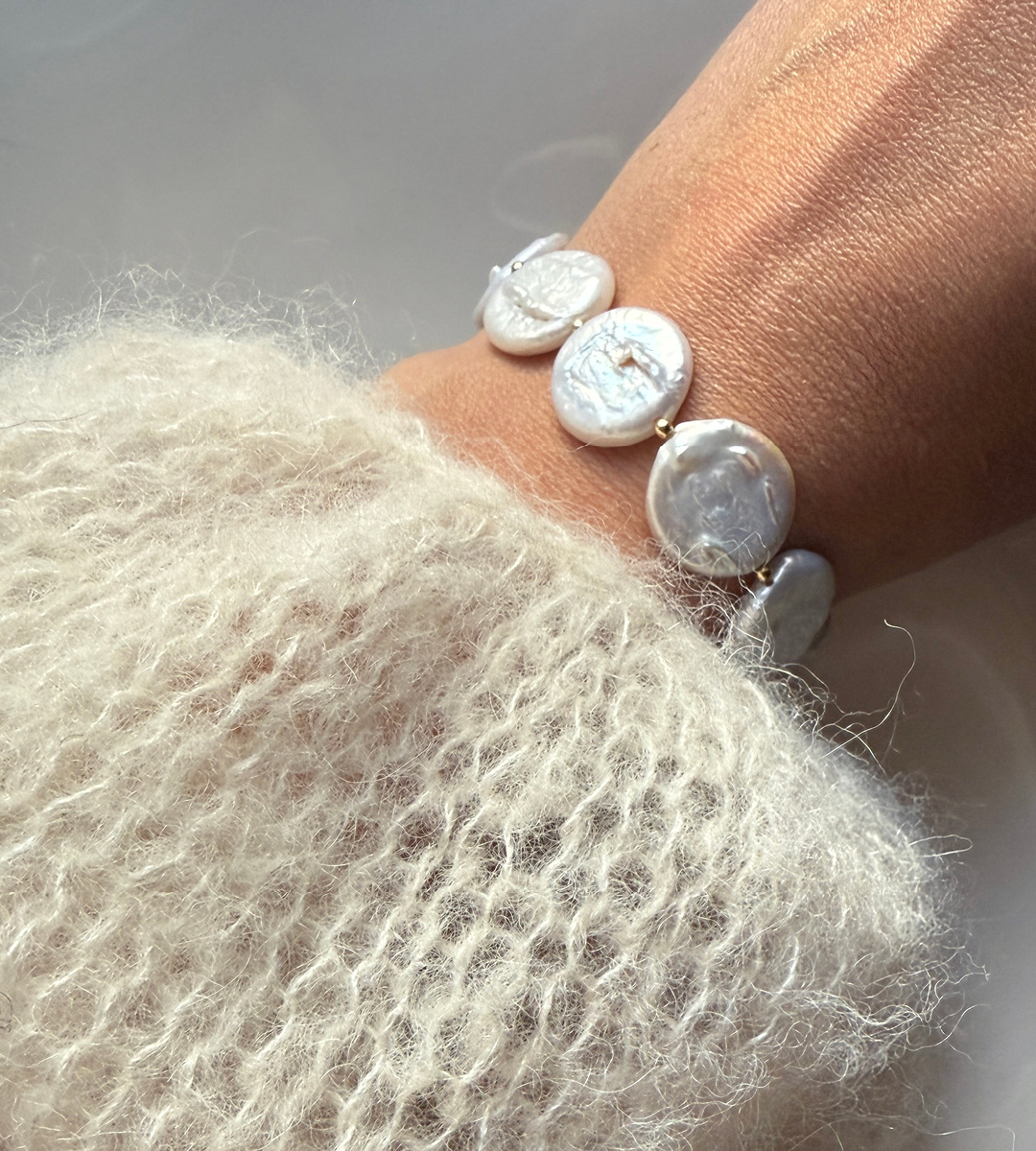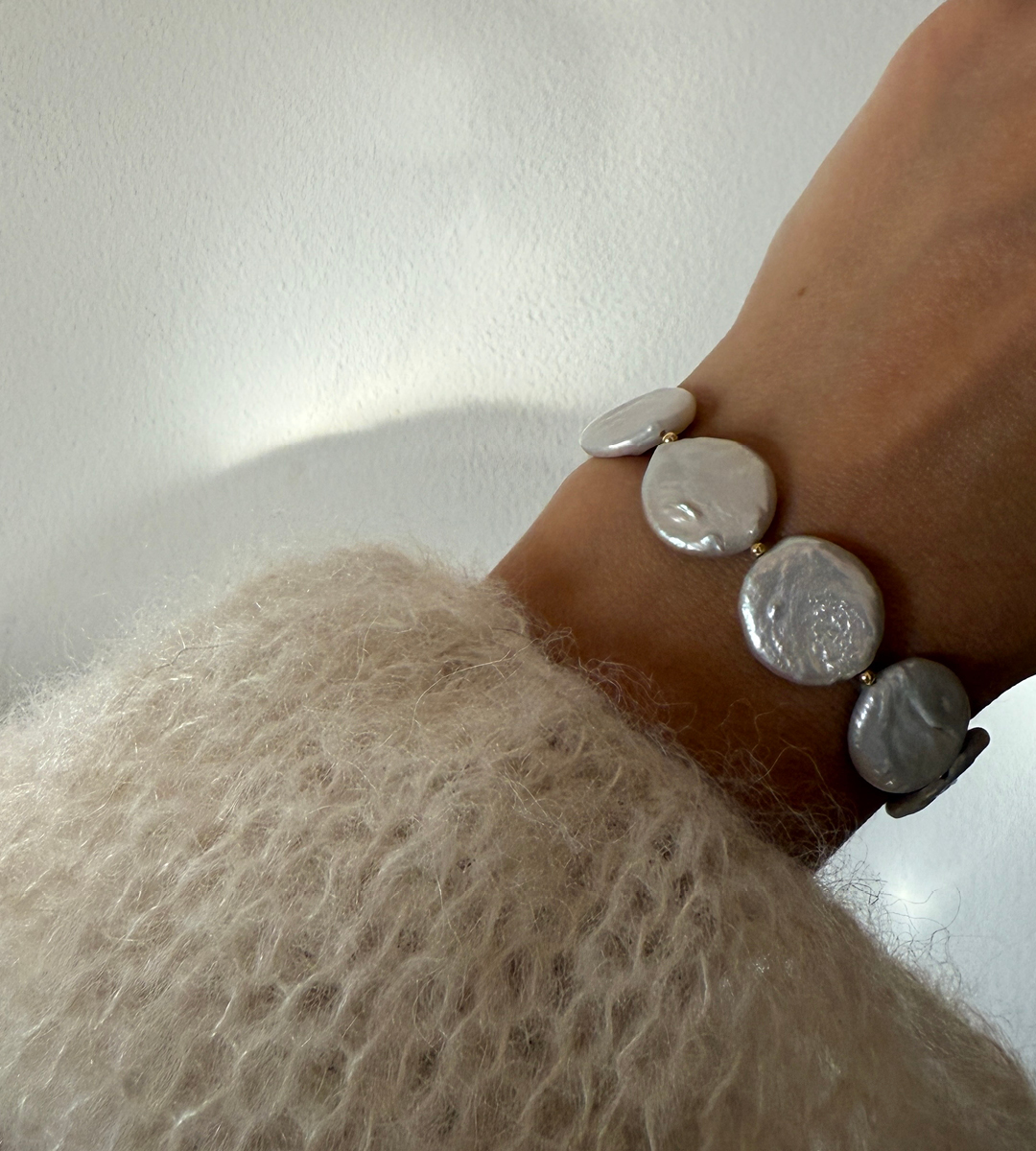Jedinečný masivní náramek z Biwa perel v netradičním kruhovém tvaru s polomatným leskem a lehkým reliéfem se stane nepřehlédnutelným kouskem, který krásně zvýrazní zápěstí. Je zároveň lehoučký jako pírko, výjimečný a plný osobité krásy, kterou tyto perly ukrývají, stejně jako Ty...