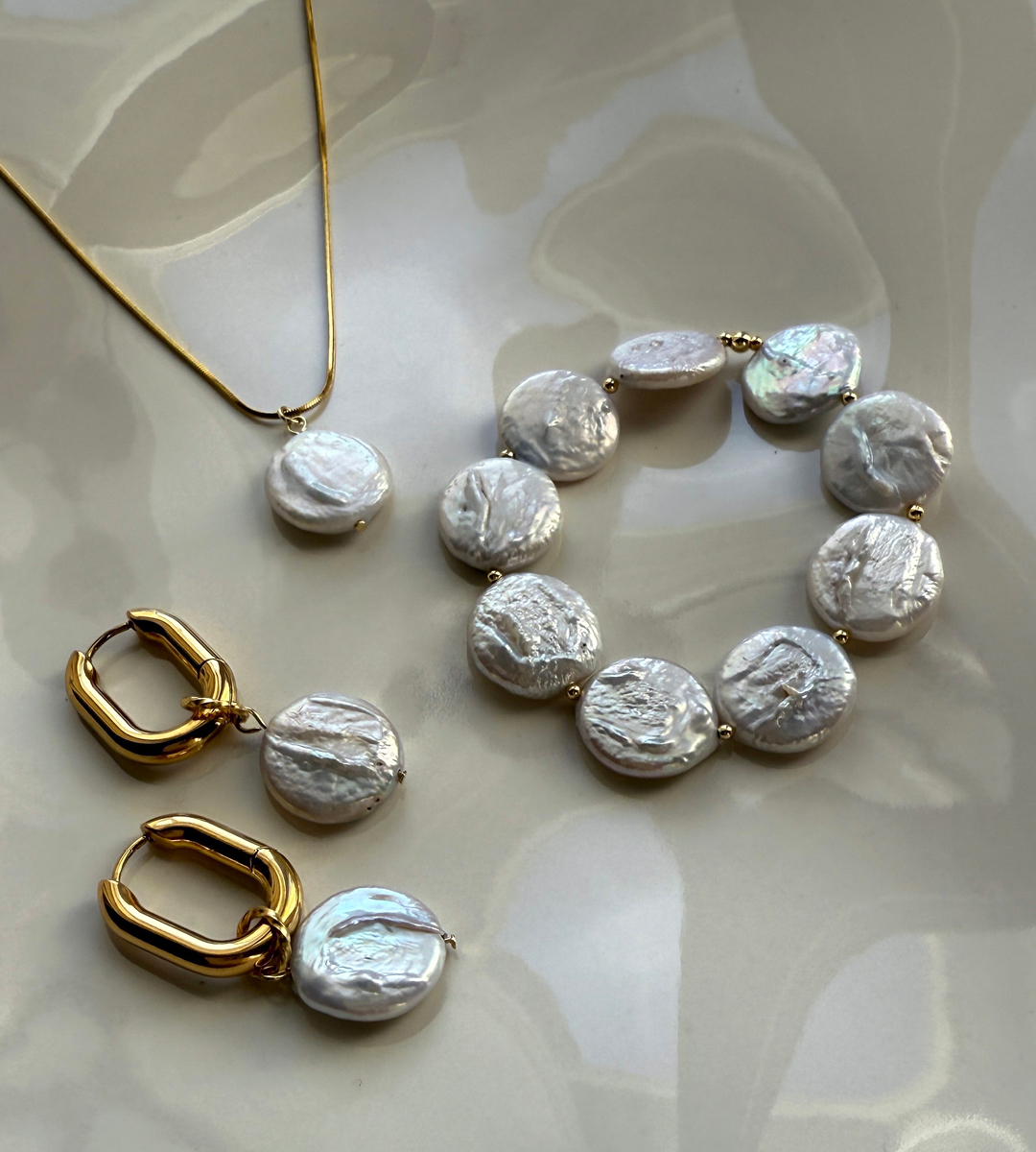 Materiál: sladkovodní perly, pozlacená nerez ocel, pružný vlasec