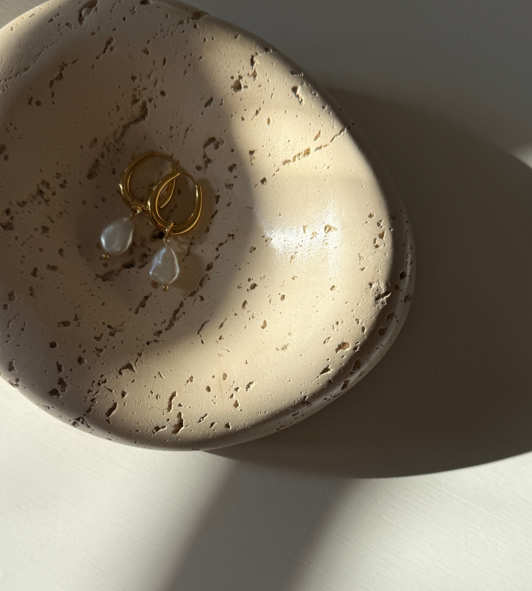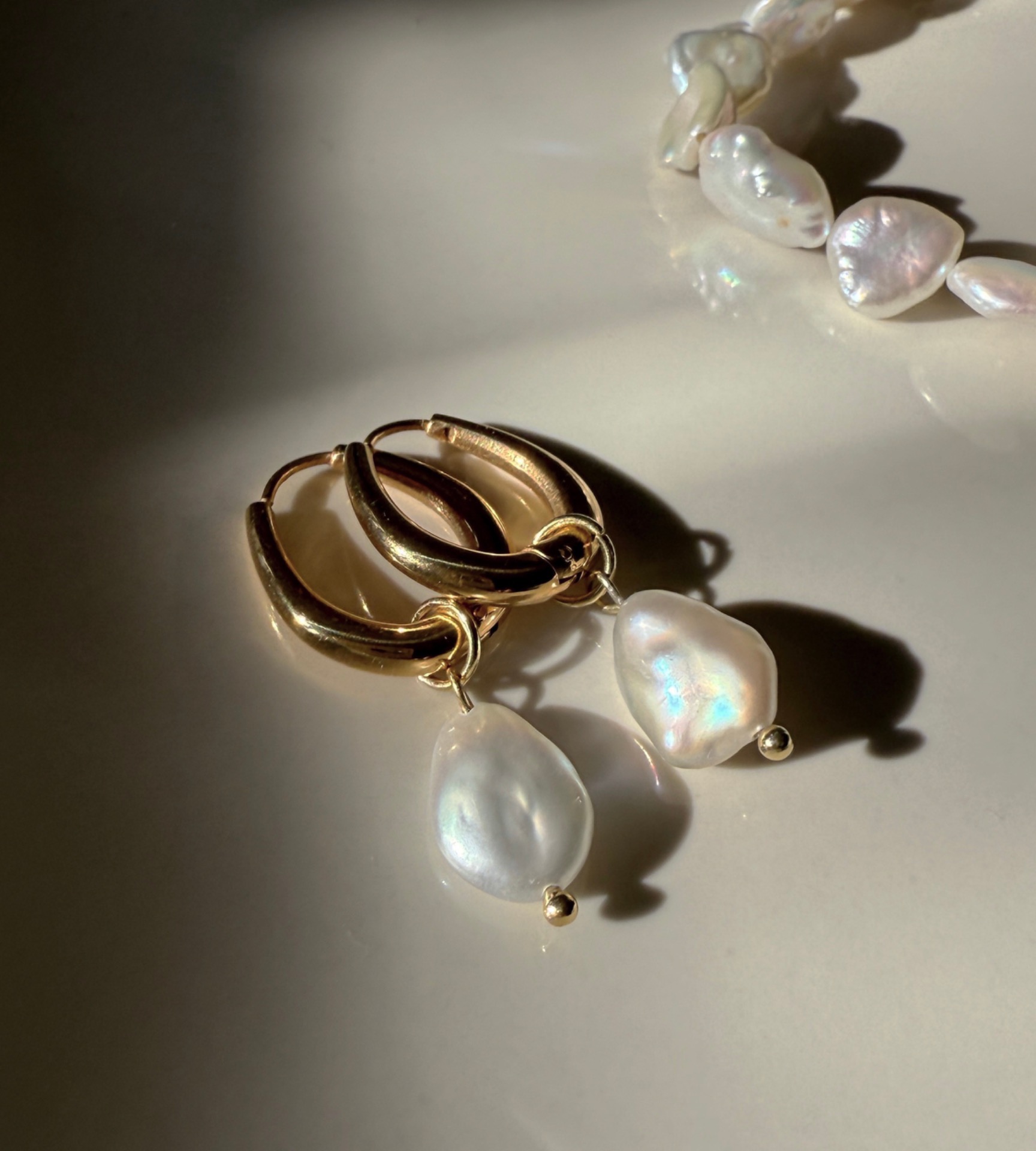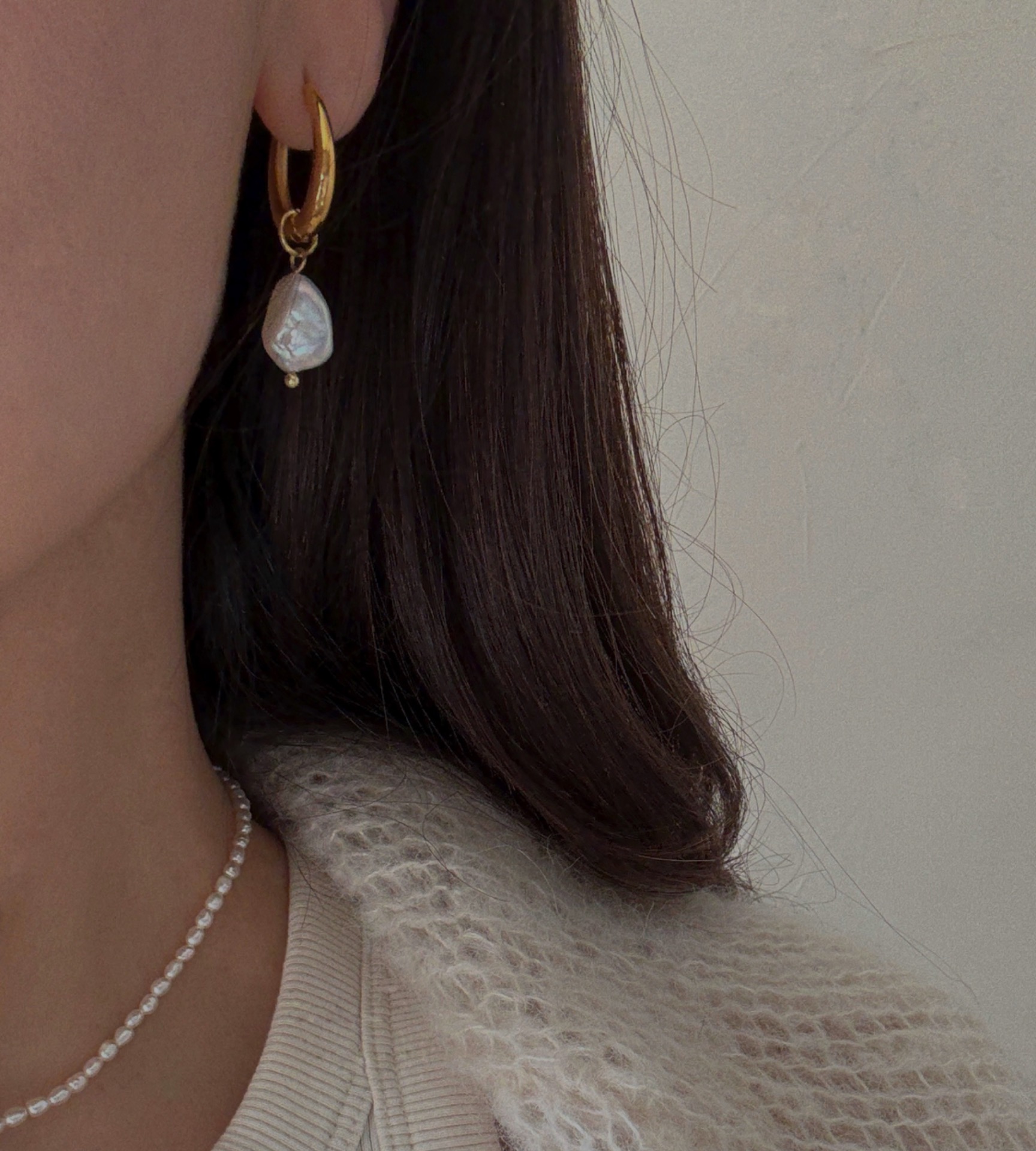 Element vody zhmotněný v jedinečných náušnicích ve tvaru kapky doplněné o zářivé drobné barokní biwa perly. Z jedné strany dokonale hladké, z druhé strany s organickou strukturou. Krása přírody propojená s ženskostí a osobitostí, která Tě chytne za srdce. V kolekci k nim najdeš také stejnojmenný náramek a prstýnek.