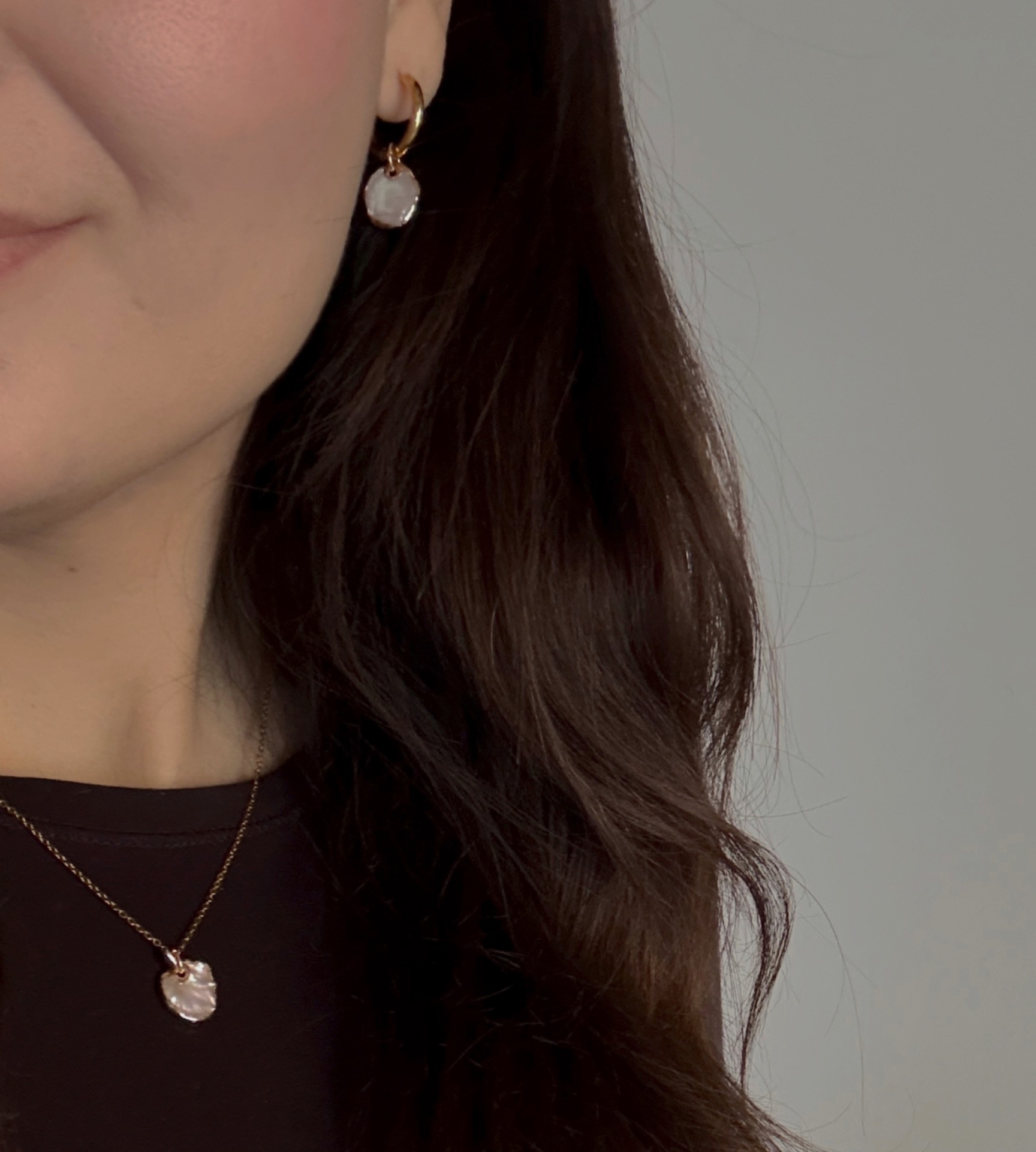 Divoká krása perel, duhový lesk a hřejivá záře zlata. To vše propojeno v jednoduchých kruhových náušnicích s přívěškem v podobě nepravidelné ploché přírodní barokní perly připomínající okvětní plátek se zlatým rámováním. Každá je jiná, každá jedinečná, stejně jako Ty...